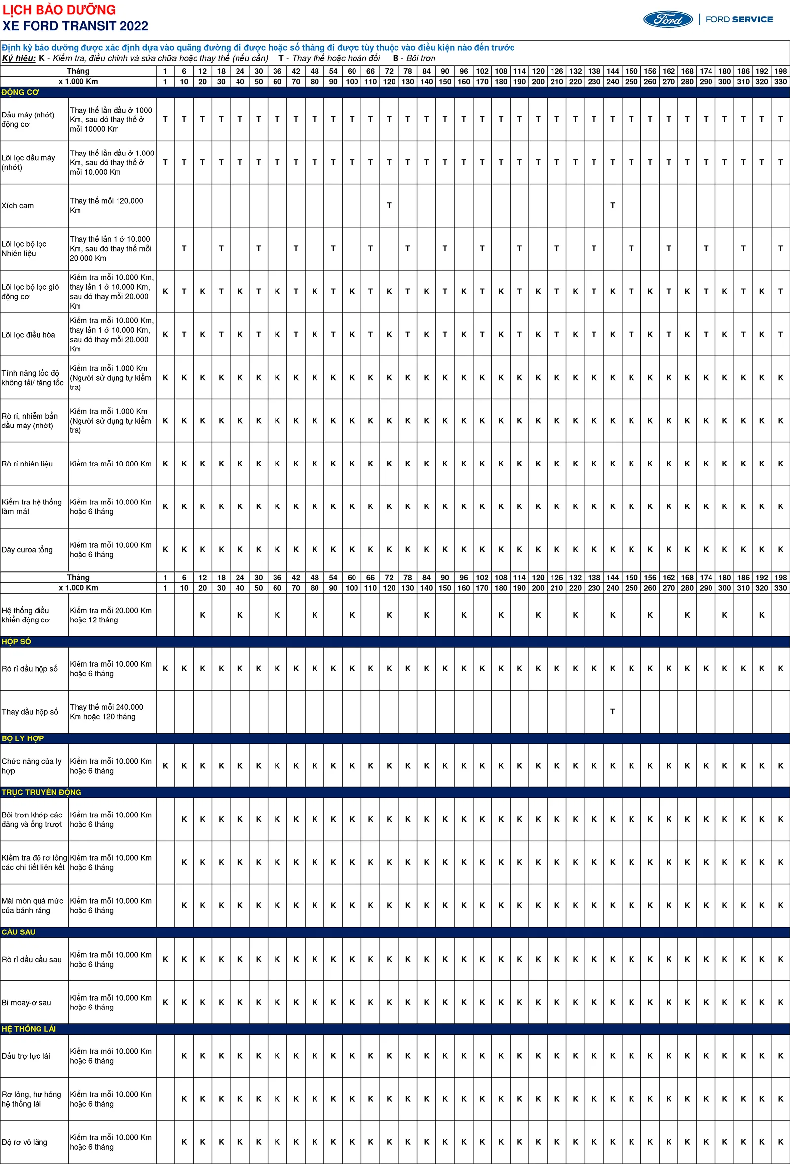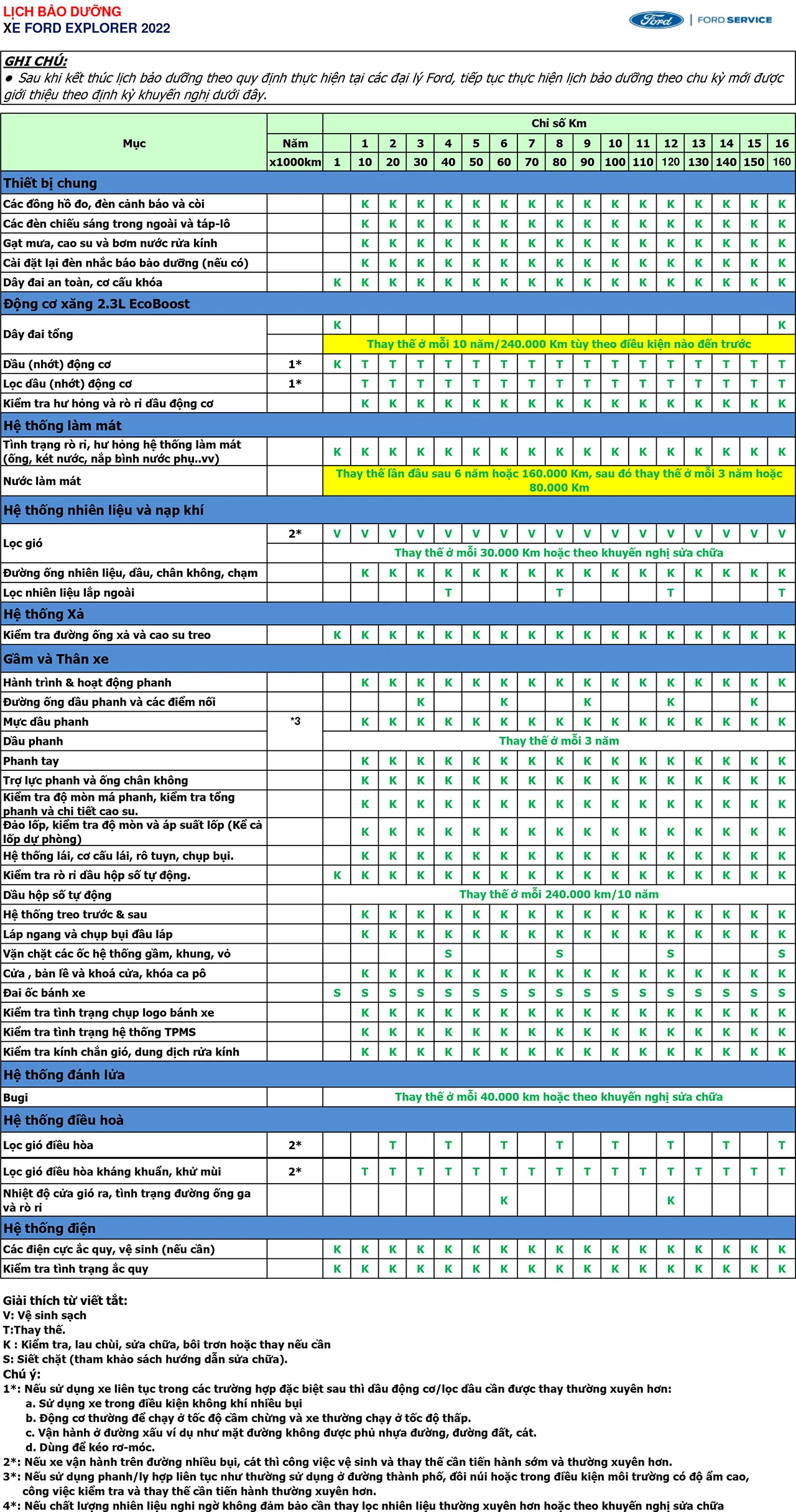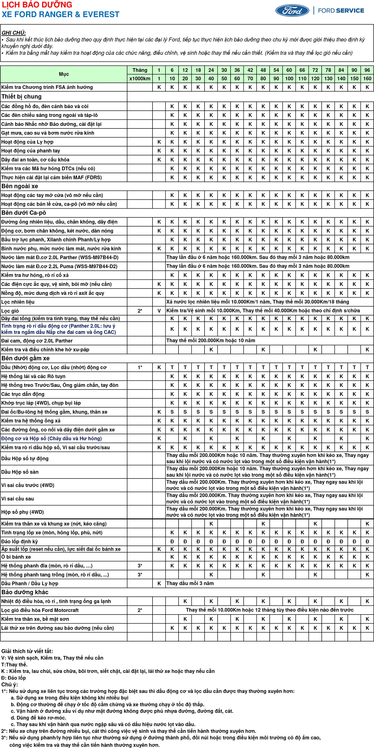 Lịch Bảo Dưỡng Xe Ford Định Kỳ